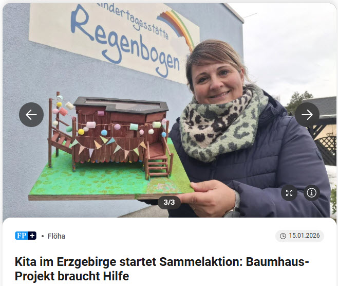 Am wichtigsten zurzeit ist für den Förderverein der KITA die Finanzierung, Planung und Erbauung des neuen BAUMHAUSES im Außenbereich des Kindergartens. Dafür sammelt der Förderverein weiterhin Spenden. Für alle Interessenten wird auch ein Bild und ein aktuelles Modell in der Heimatscheune ausgestellt. Denn aktuell ist es noch immer so, dass das alte Baumhaus gesperrt ist. Deshalb ist es besonders wichtig, neue Möglichkeiten zu schaffen, um sich weiterhin frei entfalten zu können. Die Kita-Kinder lieben ihr Baumhaus als Rückzugsort um mit voller Neugier, Fantasie und Bewegungsfreude den Kitaalltag zu verbringen