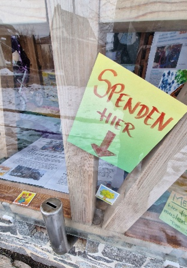 Dazu gibt es die Möglichkeit an der Heimatscheune etwas ins Spendenrohr einzuwerfen oder per Überweisung oder PayPal uns etwas Gutes zukommen zu lassen.